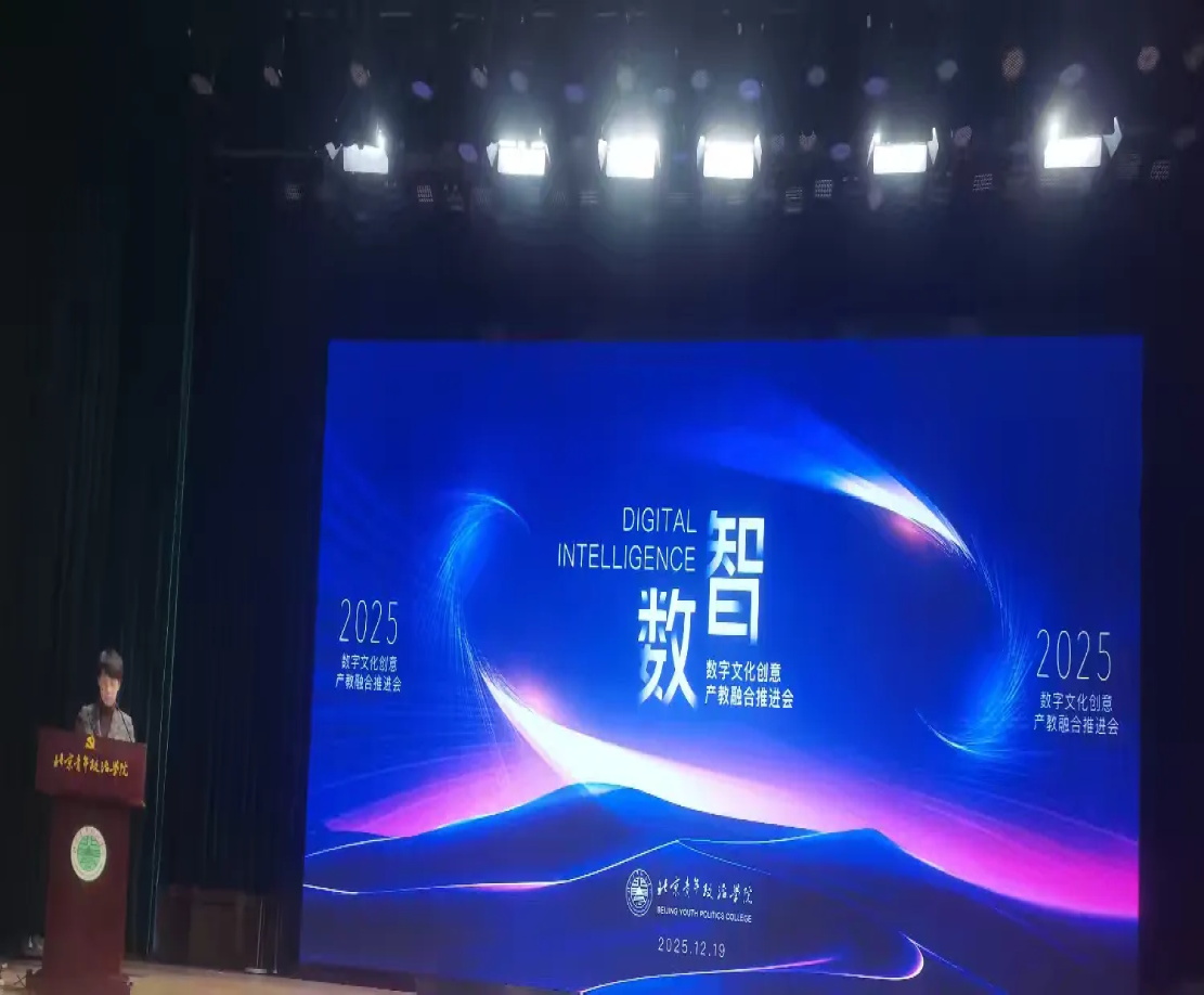 为更好地服务文化强国和数字中国战略的实施,秉持"科技赋能文化、文化赋能城市"的理念,推进我校数字媒体专业发展,共同探讨数字文创产教融合创新发展的新路径、新业态、新模式,促进产教融合、校企合作,不断提升服务数字文化产业发展能力,培养高素质技术技能人才。2025年12月19日,我校受邀前往北京青年政治学院参加数字文化创意产教融合推进会。