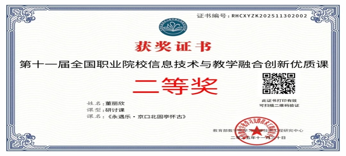 第十一届全国职业院校信息技术与教学融合创新优质活动在山东省邹城市落幕,我校2位教师再创佳绩,双双荣获国赛二等奖!展现了我校在信息化教学改革中的扎实积累与创新活力。