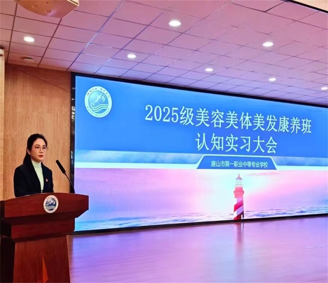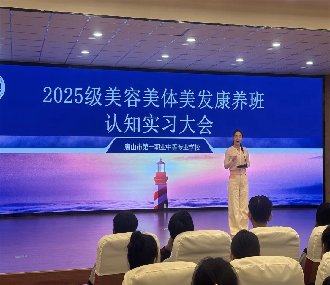 25级美容美体、美发与形象设计、康养旅游服务专业学生,走进唐山颜续科技有限公司旗下门店进行认知实习,在大会上,企业代表分享了瑞贝可30年来坚持品质与创新的发展故事。学生们观看宣传片了解了企业从一家门店成长为区域连锁品牌的奋斗历程。