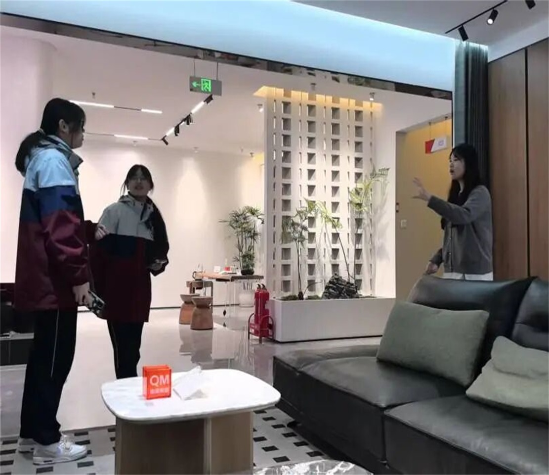 在悦居家居,25名学生以家具宣传为核心任务,全程参与从前期调研、中期拍摄到后期剪辑的全流程内容创作。同学们沉浸于家居场景,用镜头捕捉产品与生活的融合,在实践中提升了拍摄剪辑、文案策划与品牌宣传的综合能力。