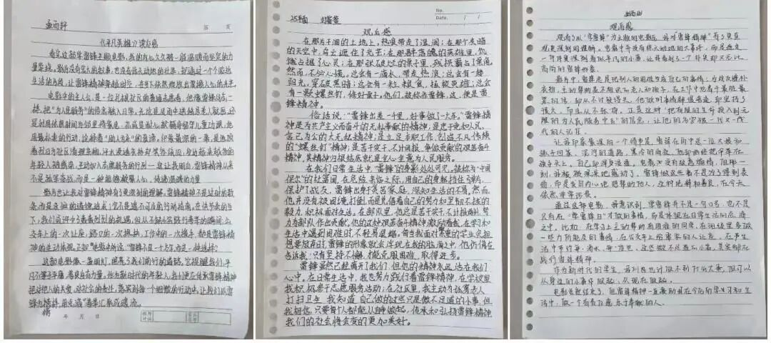 引导学生观看雷锋精神电影,将“全心全意为人民服务”的初心刻进心底,用笔墨写下真挚感悟,让雷锋精神的种子在书香中悄然扎根。