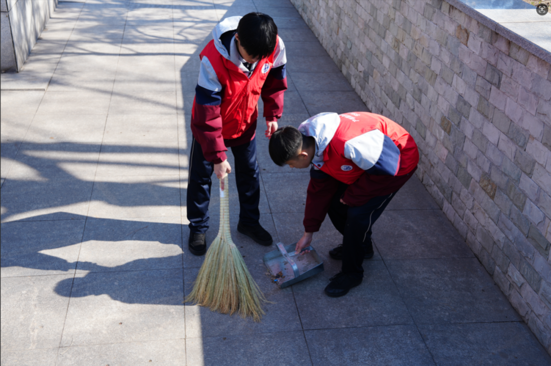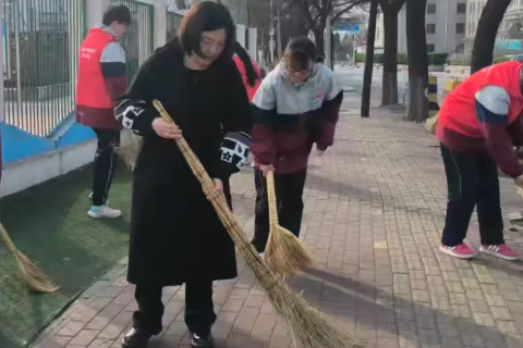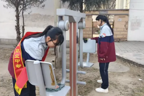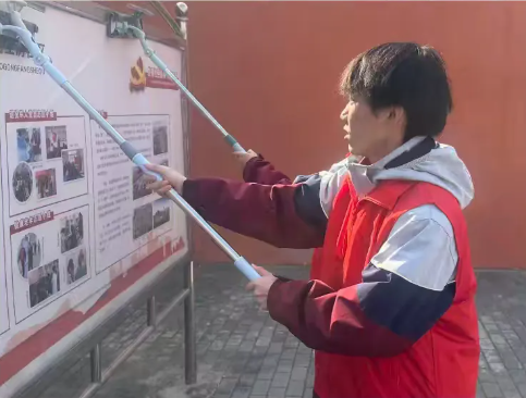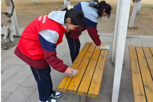 党员教师带领团员学生组成志愿队,对校园内的宣传栏、体育器材、课桌椅、校园绿植等公共设施进行全面清洁、整理与养护,擦拭污渍、扶正歪斜设施、清理卫生死角,用双手呵护校园整洁美观,培养学生爱护公共财物、守护校园家园的责任意识。