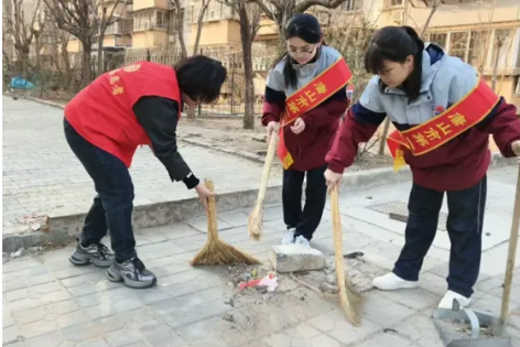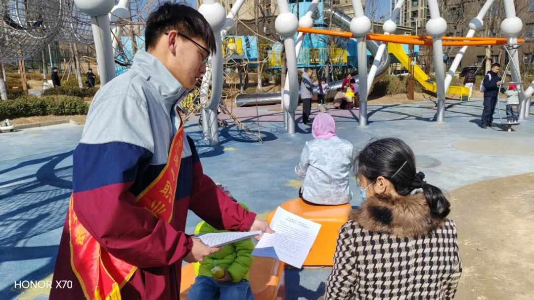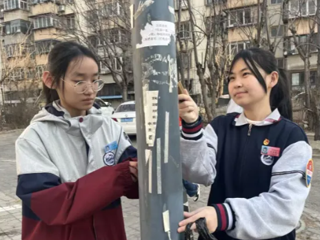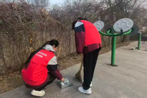 师生志愿者队伍走进新河嘉园社区,铲除小广告,擦拭社区公共运动器材,摆放街边共享车辆,以实际行动改善社区环境,助力社区群众的居住环境提质升级。