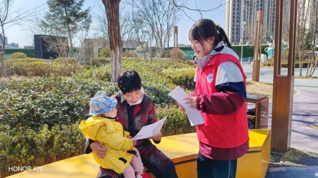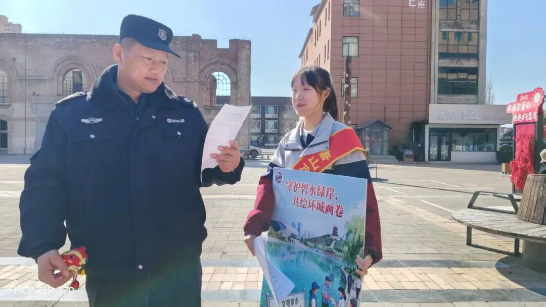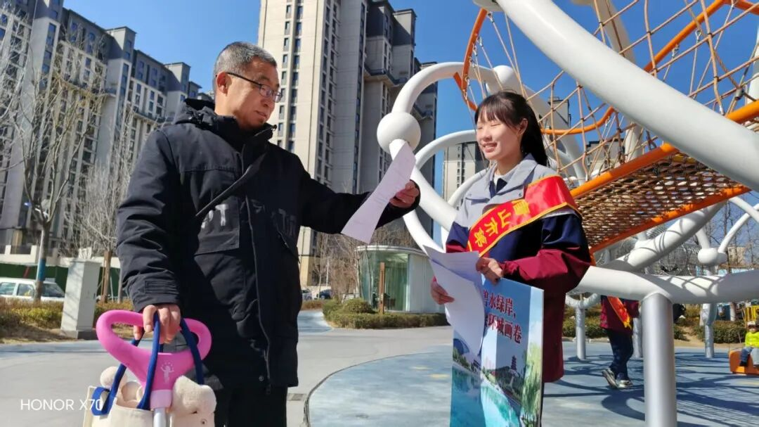 团员学生在党员教师带领下,围绕环城水系沿线,向过往市民发放环城水系保护宣传册,耐心讲解垃圾分类、低碳生活、环境保护等相关知识,倡导绿色低碳的生活方式,针对乱扔垃圾、随意戏水等不文明行为进行耐心劝导,引导居民树立环保意识,呼吁市民共同守护环城水系的清澈与美丽,以点滴行动助力城市生态环境持续向好。